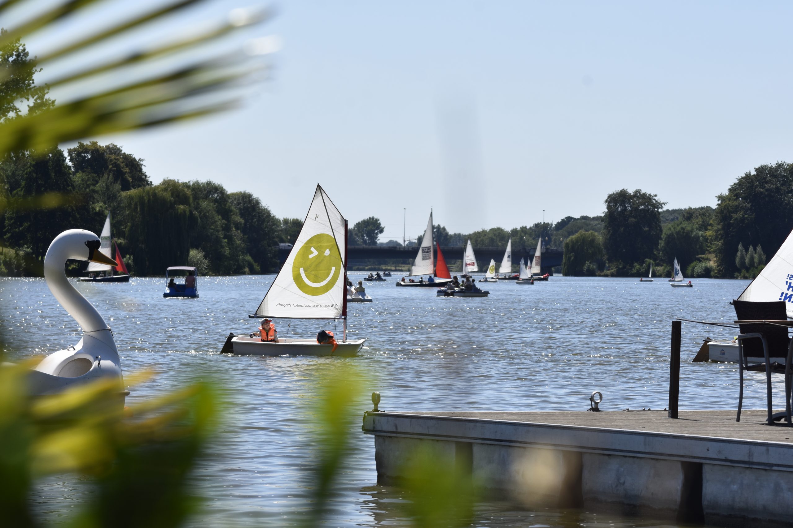 Sailing in the City: Seit beinahe 70 Jahren sind wir mit einem hervorragenden Bootspark und kompetenten Segellehrern DIE Anlaufstelle für Segelfreunde. Bei uns am Aasee bekommen Sie nach einem stressigen Arbeitstag den Kopf frei.