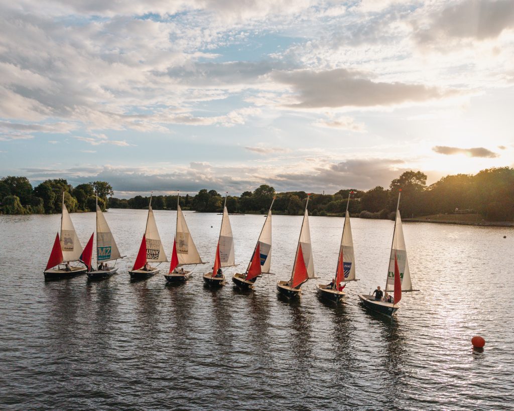 Ab 14 Uhr können alle Interessierten mit Sportbootführerschein beim „Ansegeln“ kostenlos die Segel setzen. Die gesamte Ausbilder-Crew der Yachtschule steht den Seglerinnen und Seglern beim ersten Aasee-Törn mit Rat und Tat zur Seite. Nach der langen Winterpause ist so mancher sicher froh, wenn ein Segellehrer das eine oder andere Manöver noch einmal kurz erklärt, bevor es hart an den Wind geht. Das gesamte Team freut sich jedenfalls auf die endlich beginnende Saison. Und nach dem gemeinsamen Segelspaß darf am frühen Abend angestoßen werden. Die Winterzeit wurde genutzt und die gesamte Flotte für diesen Tag fit gemacht. Alles blitzt und strahlt…